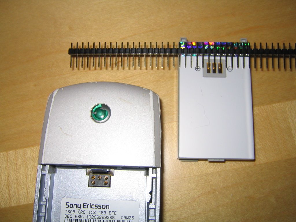 Anyway I went looking for the contactors, thinking they were custom and I'd never find them. I found these .1" Mill-Max spring loaded headers but, having only my faulty memory, felt sure that the battery pads were well over a .1" pitch. To my delight, when I returned home and bothered to check I discovered that my cell phone plunger things looked exactly like the Mill-Max headers and that the battery pads were in fact .1" pitch.