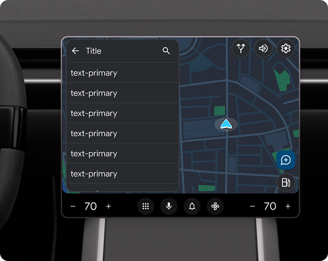 مقدار متن ثانویه مجاز در هر ردیف فهرست بسته به پارک یا رانندگی خودرو متفاوت است. برای به حداقل رساندن حواس پرتی، متن در حین رانندگی به 2 خط کوتاه می شود. هر متنی که قرار است در حین رانندگی خوانده شود باید در ابتدای متن ثانویه نمایش داده شود.