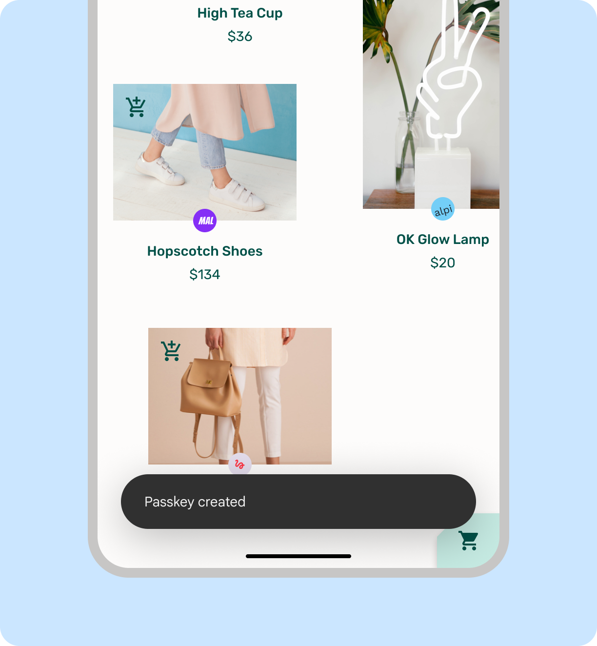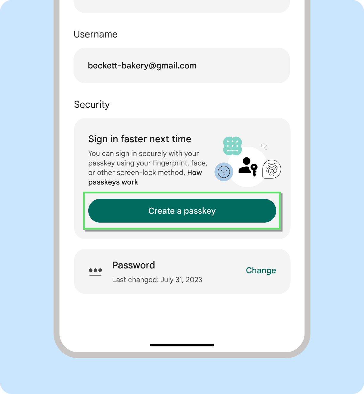 - משתמשים בסמל מפתח הגישה שסופק על ידי Google כדי ליצור חוויית כניסה עקבית ב-Android