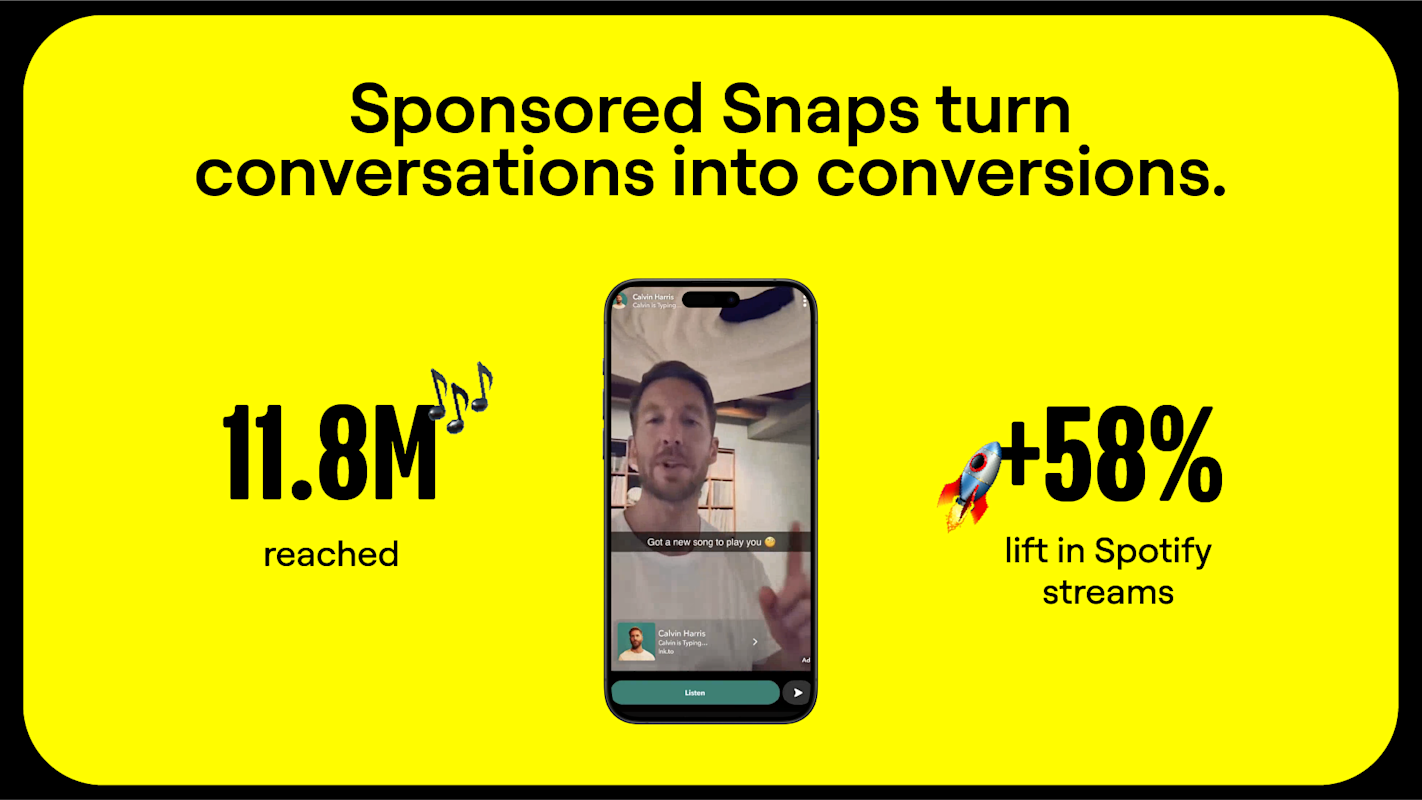 Calvin Harris was the first artist to tap into Sponsored Snaps to promote his single Blessings. The campaign reached 11.8 million Snapchatters in the UK and drove a 58% lift in Spotify streams. With a playful “Calvin Harris is typing…” message, the creative spread quickly beyond Snapchat across other social platforms.