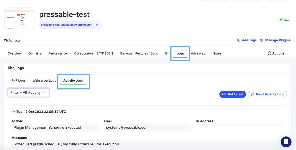 We are excited to share that you can now track various actions taken on your Pressable account and sites within the My.Pressable.com Dashboard.