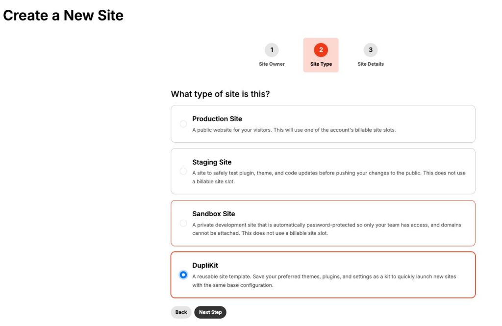 If you have an existing sandbox site that you’d like to use as a template, you can convert it to a DupliKit: