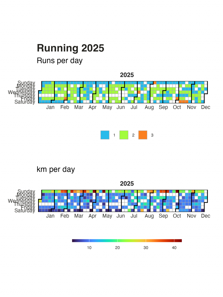 In this post I’ll use R to recap my running data from 2025. Previous round-ups are here (2021, 2022, 2023, not sure why I didn’t post one for 2024…). I had a goal of running a total distance of 3650 km in 2025. In truth, after running 3500 km in 2024, I decided to aim […]
