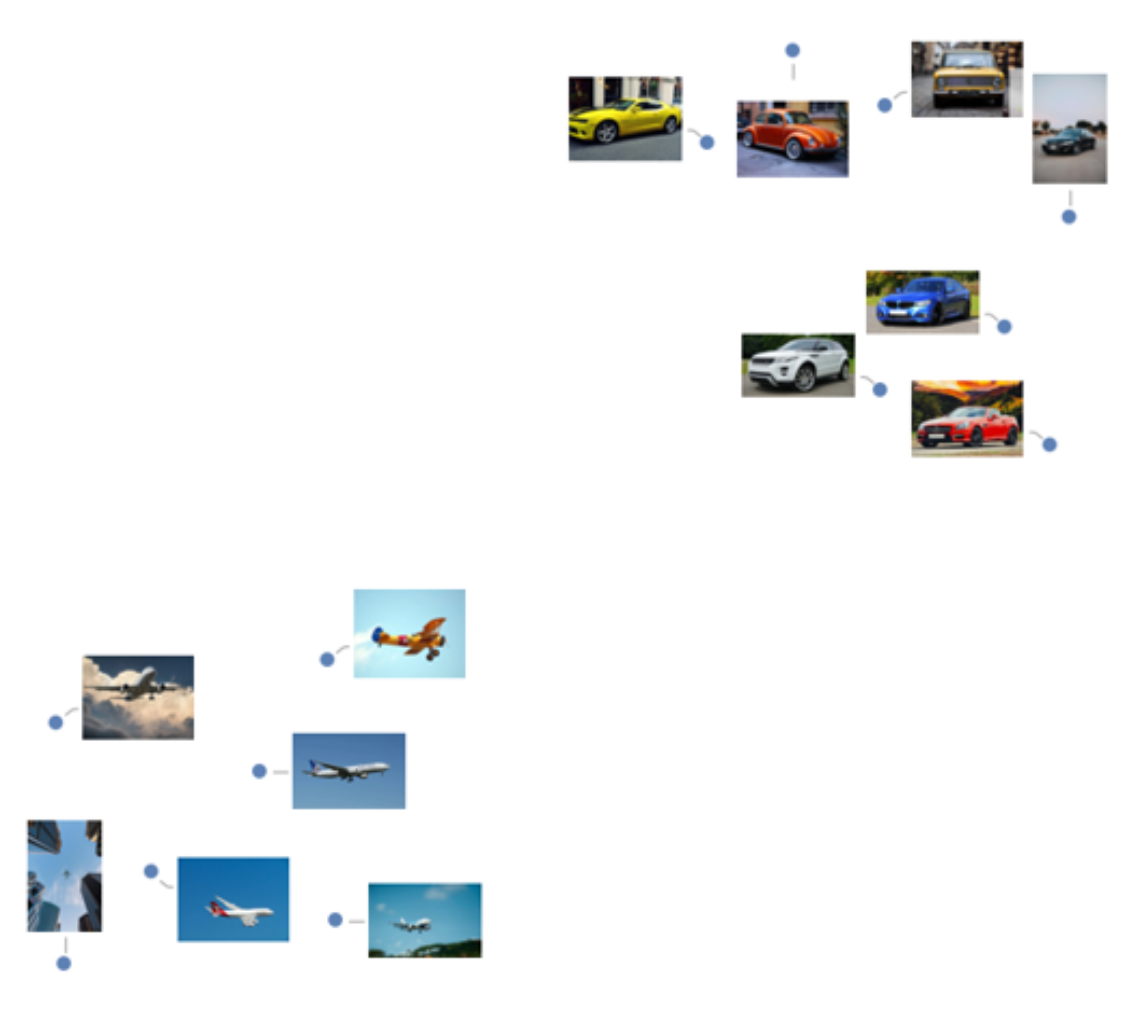 Visualize the feature space embedding performed by the image encoder. Notice that images from the same class are clustered together: