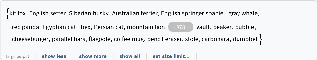 Obtain the probabilities of the ten most likely entities predicted by the net: