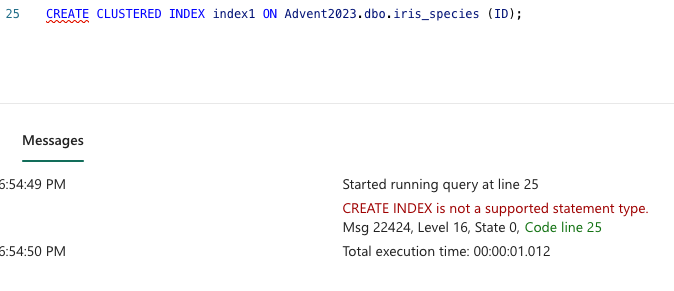 CREATE CLUSTERED INDEX index1 ON Advent2023.dbo.iris_species (ID);