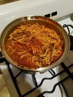 added the spaghetti squash noodles and lowered the heat to the lowest setting and put the lid on it.