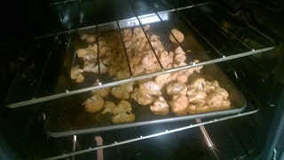 Spicy Buffalo Wings sauce on Roasted Cauliflower. Todd ate all of these.