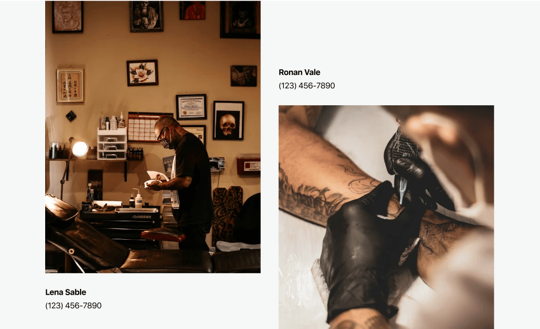 Exiba meu portfólio de fotografias com um layout elegante e minimalista, galerias de imagens em tela cheia, animações sutis e um espaço para depoimentos de clientes.