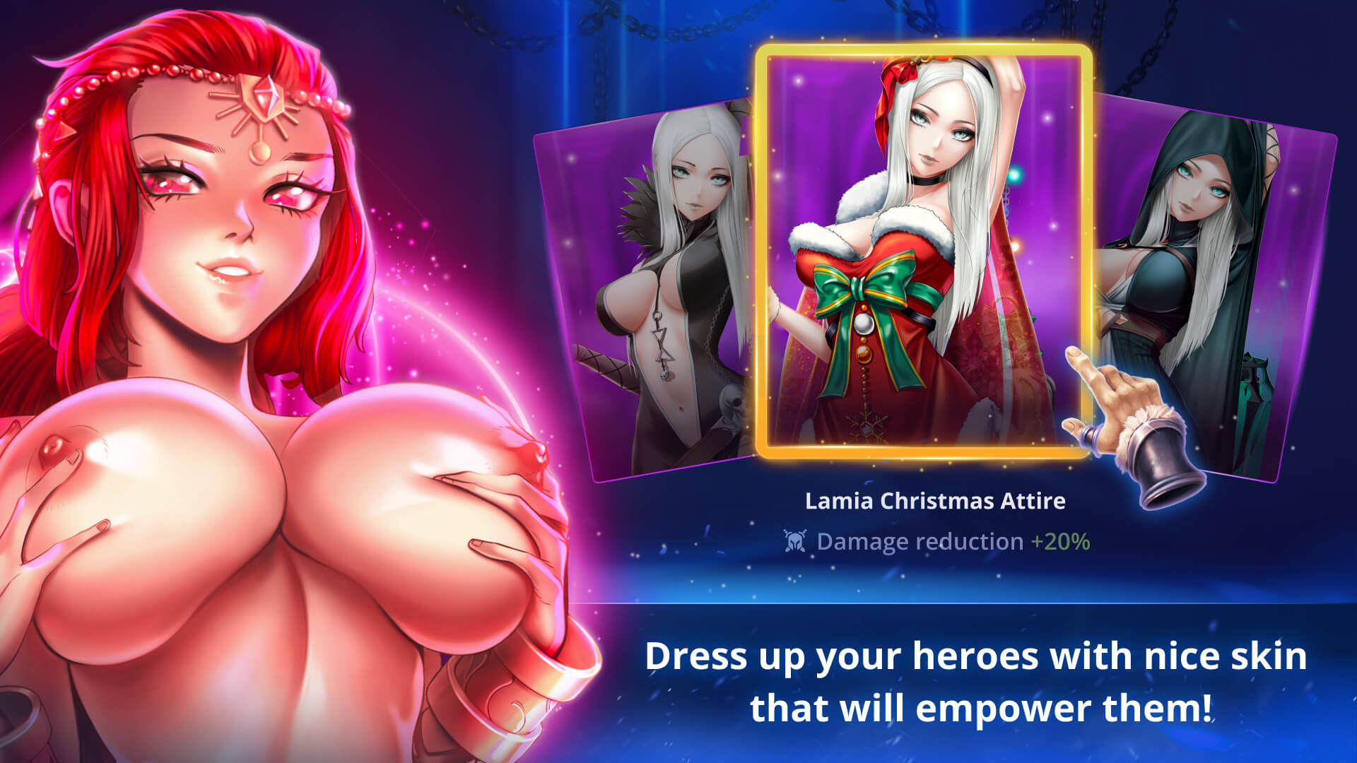 Assemble a team of sultry warriors who will help you climb to the top of the best players. With each victorious battle, you'll improve your heroes and unlock new abilities to tackle the next challenge. Collect valuable resources, artifacts, and experience points to outwit and defeat other players. Follow the current meta or - create your own, dominating all other players from all over the world.