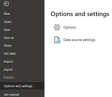 Regardless of the version of Power BI Desktop that is installed, these options are available by using the File menu in the ribbon, selecting Options and settings, and then Options, as shown in Figure 1.2.