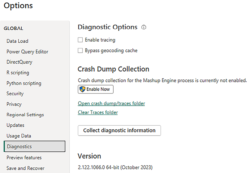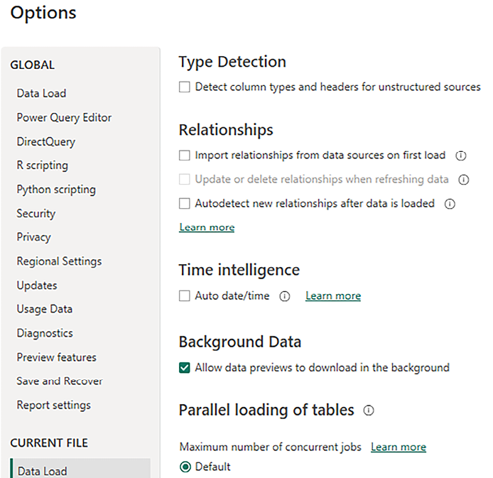 GLOBAL options are applied to all Power BI Desktop files created or accessed by the user, while CURRENT FILE options must be defined for each Power BI Desktop file. The following steps are recommended for GLOBAL options:
