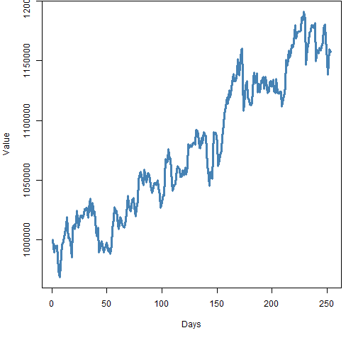 In the post “A minimum variance portfolio in 2011” we explored a particular portfolio. Figure 1 shows its value through 2011. We’ll use this as our example.