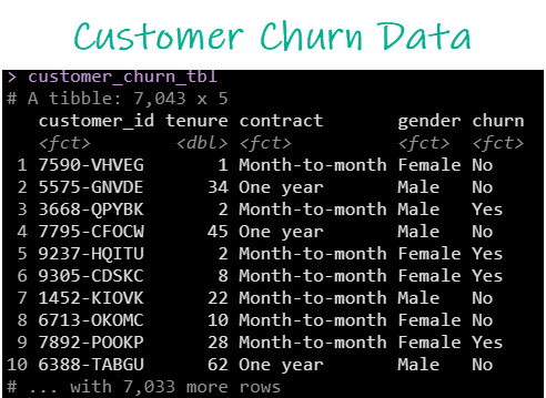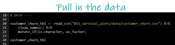 We’ll read in the Customer Churn data set that was used in the previous R-Tip on Survival Analysis.
