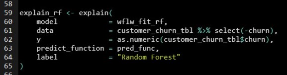 With the cheat code in hand (aka our custom prediction function), I can put all of the pieces together to make an explainer with an amazing R package called DALEX.