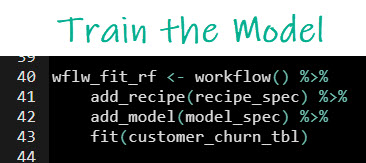 We have the two ingredients to train a model: A preprocessing recipe specification and a model specification. Next, we combine them and train them on the unprocessed dataset.