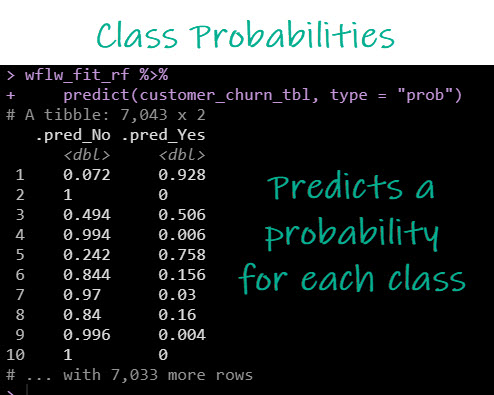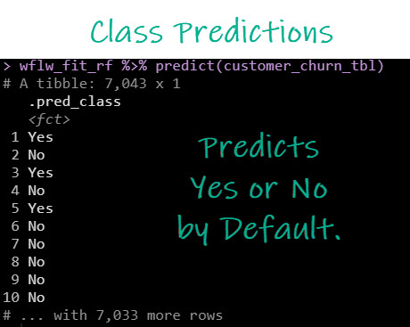 Here’s the result. A bunch of Yes/No’s. This is what we call “Class Predictions”. The algorithm is actually assigning “class” or category to the churn prediction.