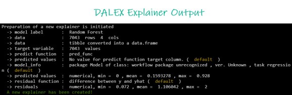 What is a DALEX explainer? Think of it like the precursor to understanding your Black-Box model. A “DALEX Explainer” is just an object that connects the model, data, prediction function, to a series of algorithms designed to interpret the model and develop explanations.