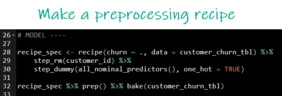 The preprocessing recipe is just a template (often called a pipeline) that takes incoming data and processes it into the “right” format for our models to learn from it.