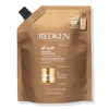 Refill your All Soft Conditioner bottle with Redken's sustainable pouch for an eco-friendly routine. After shampooing with All Soft Shampoo, apply to wet hair and rinse thoroughly.