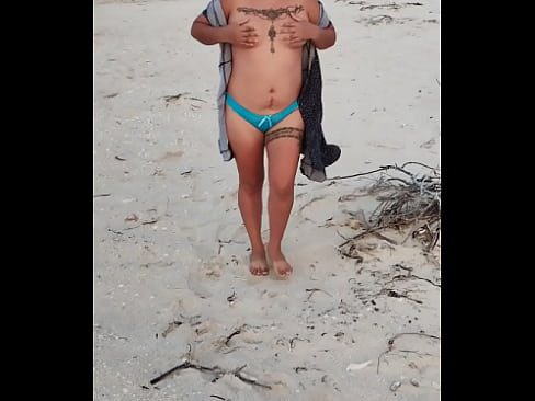 Exhibiendome en playa mexicana muestro las tetas y el culo