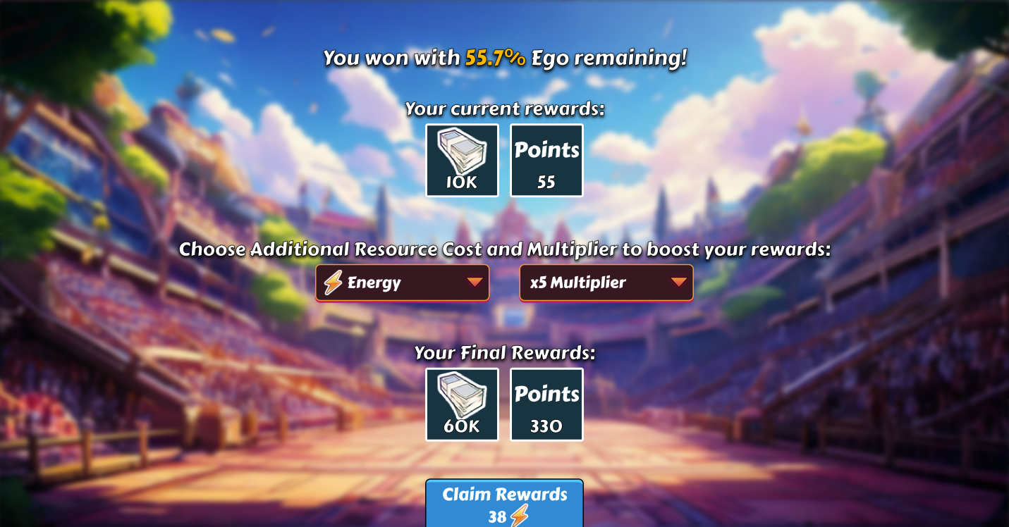 Multiplica tus recompensas: después de una victoria, decide cuánto más quieres multiplicar tus puntos y botín gastando recursos adicionales.