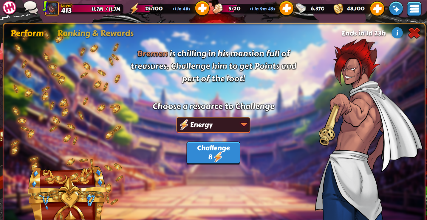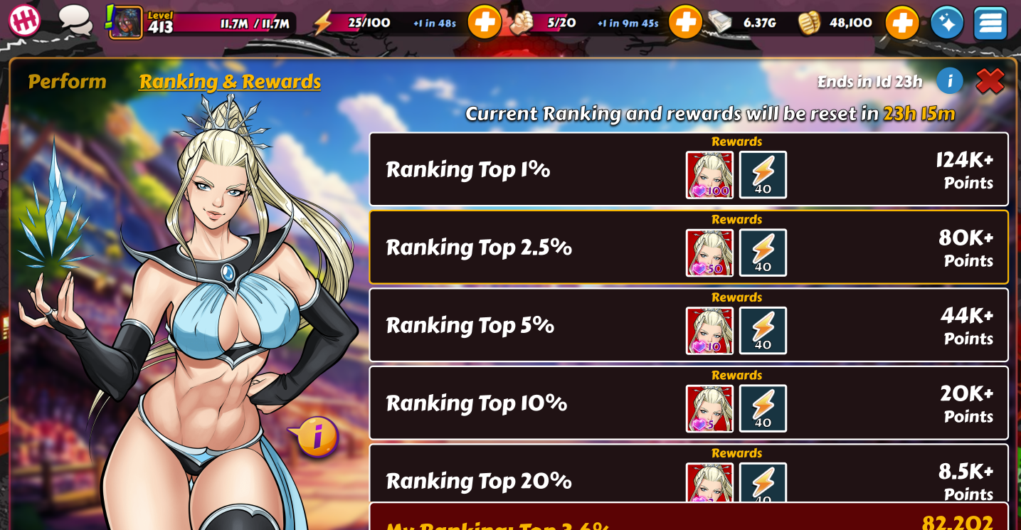 Las recompensas de clasificación se otorgan diariamente, y los mejores obtienen un botín importante. Consigue al menos 100 puntos para participar en la competencia.