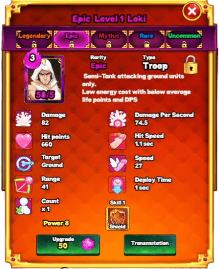 De rareté épique, vous pourrez débloquer une compétence, deux pour légendaire et mythique.