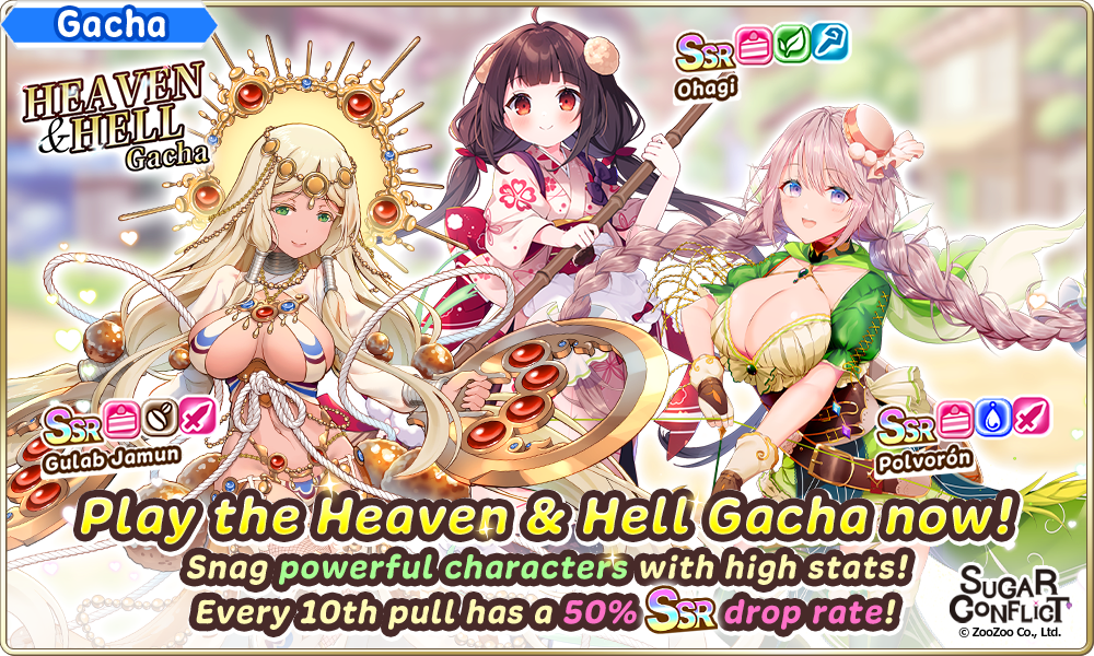Le Gacha Ciel et Enfer est un gacha à durée limitée proposant uniquement l'option 10 tirages. Mais attention : votre 10e tirage a 50 % de chances de faire tomber un personnage SSR !