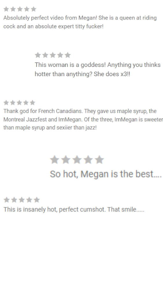 I'm Megan, your girl next door, your fuckfriend, i'm the one who loves to get your huge load on my face. THE ONE who's going to keep your secrets! You can tell me everything...and...ask me pretty much anything, come and knock at my door! :PShow more